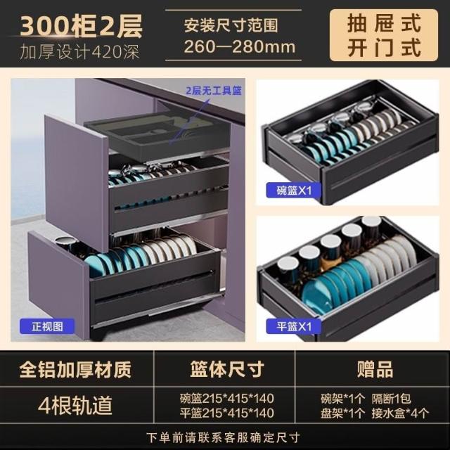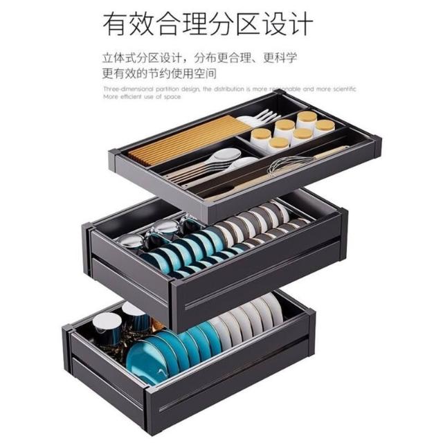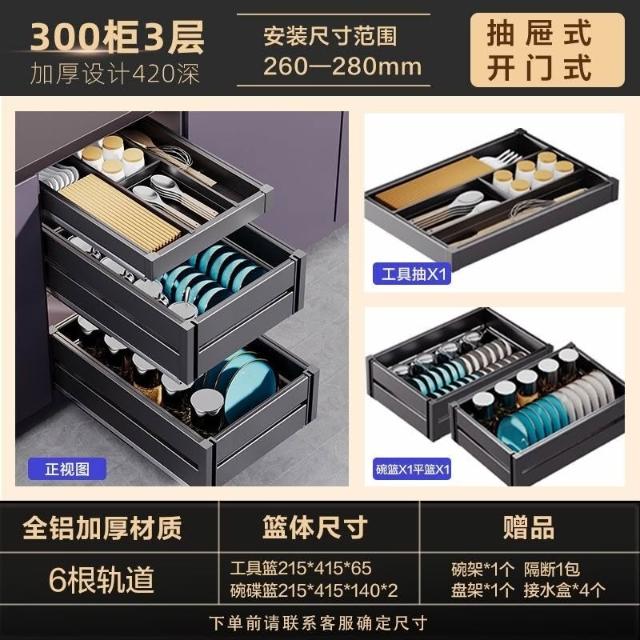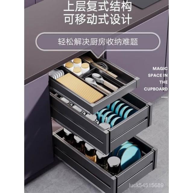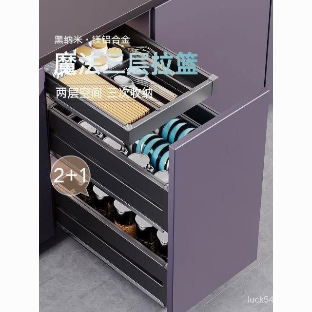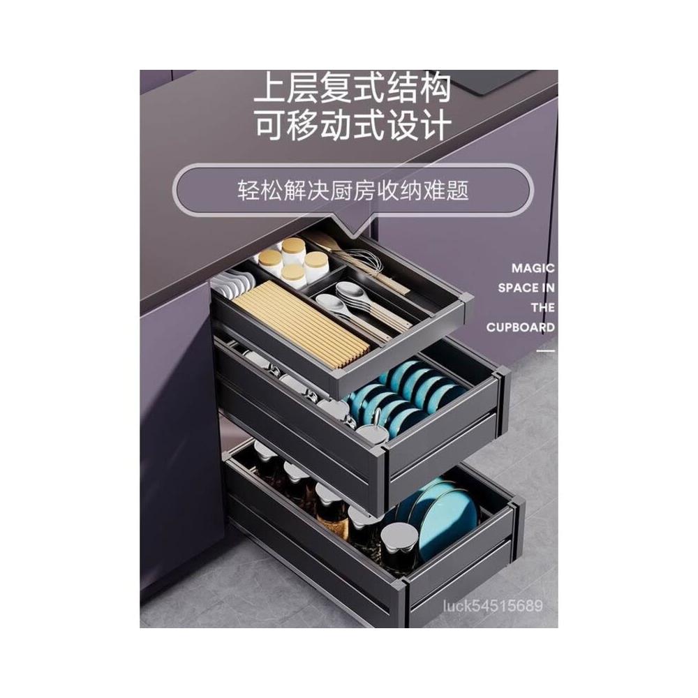 含運#含稅廚房櫥櫃新款拉籃三層抽屜式開門式碗碟架調味收納碗籃極簡置物架