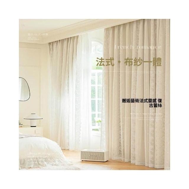 法式奶油色窗簾 雙層蕾絲窗簾 遮光隔熱窗簾 ins風臥室客廳布紗 一體成品新款紗簾 美居生活屋