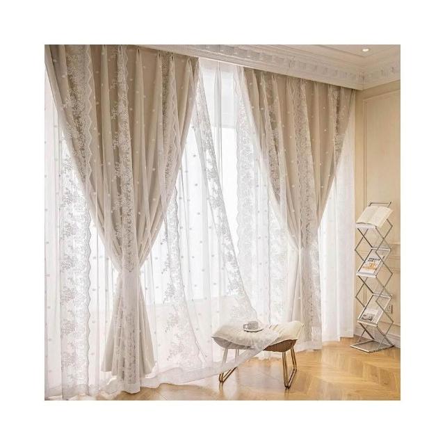法式奶油色窗簾 雙層蕾絲窗簾 遮光隔熱窗簾 ins風臥室客廳布紗 一體成品新款紗簾 美居生活屋