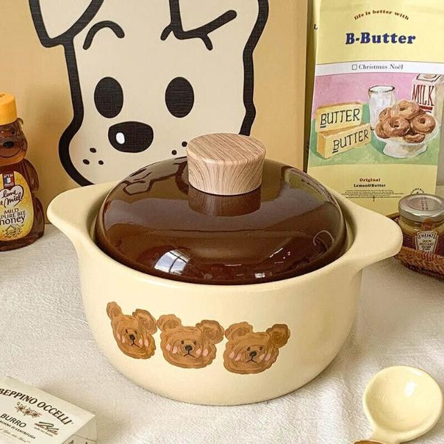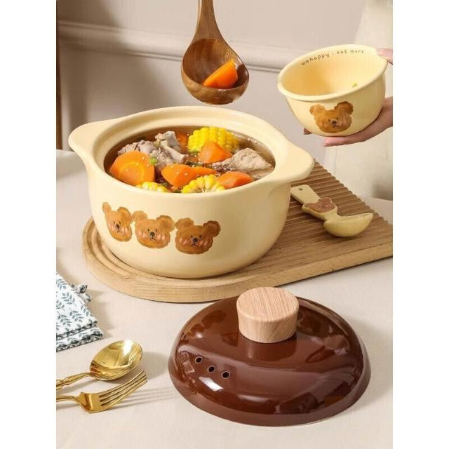 高顏值小熊砂鍋 家用燃氣煤氣竈燉鍋 煲湯燉湯鍋 陶瓷鍋 煲仔飯湯鍋 沙鍋