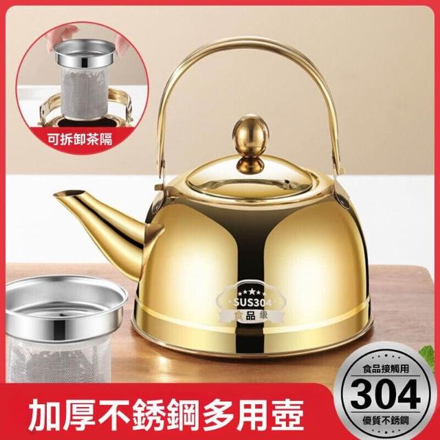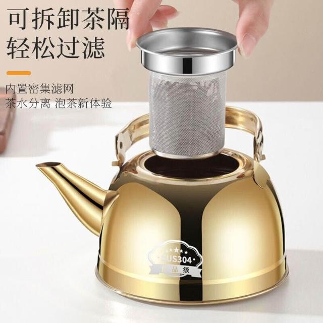 加厚304不銹鋼茶壺 泡茶壺 不銹鋼餐廳茶水壺 家用過濾網茶壺 電磁爐茶壺