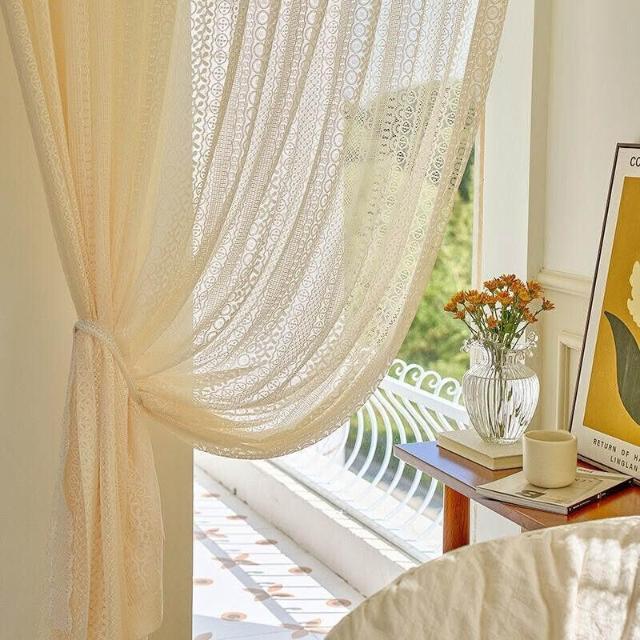 仙氣飄飄紗簾 法式蕾絲窗簾 紗簾 奶油色客廳窗簾 飄窗 陽臺 復古窗紗 透光不透人 美居生活屋
