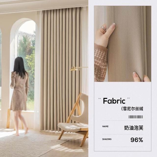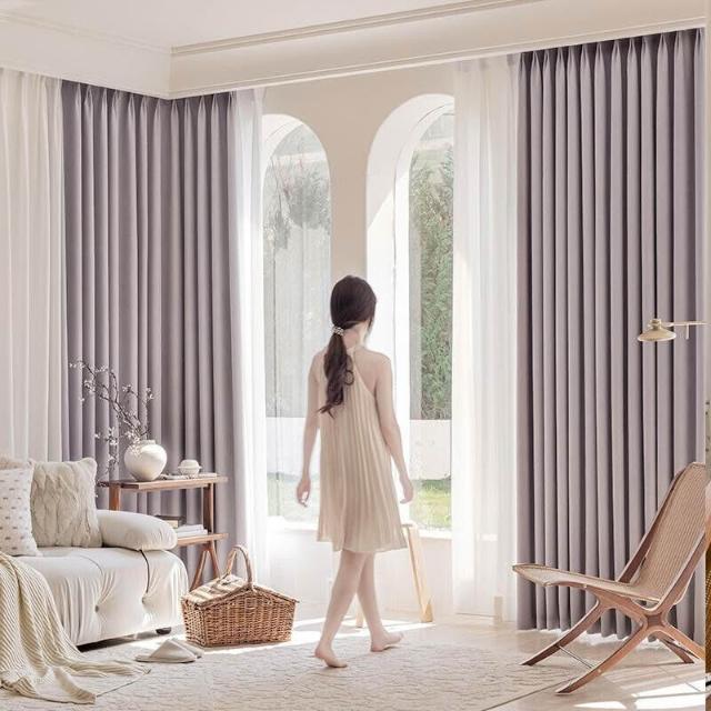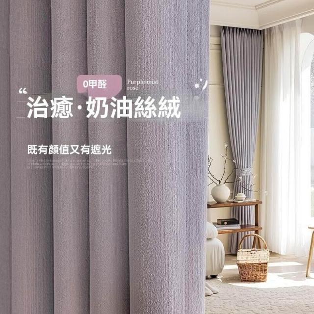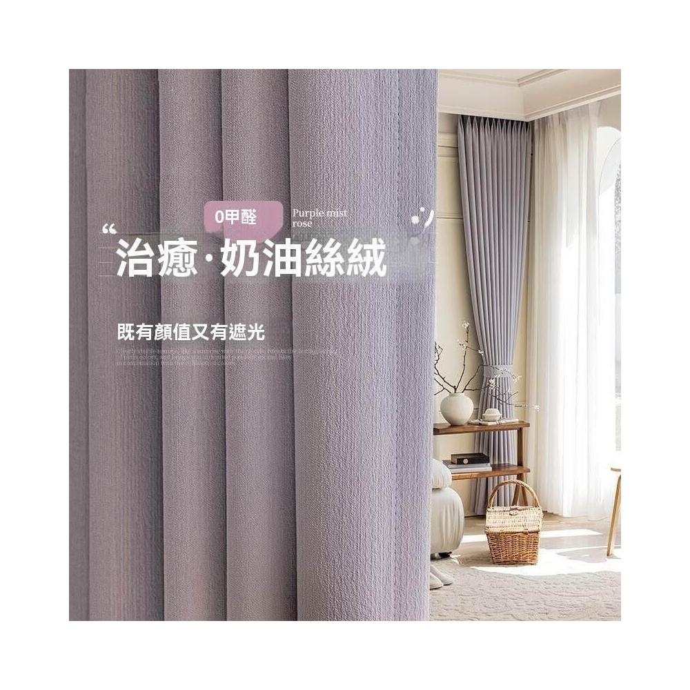 雪尼爾窗簾 輕奢現代窗簾 高檔 客廳紗簾 2024新款窗簾 臥室 全遮光簾 紫色奶油絲絨定型窗簾