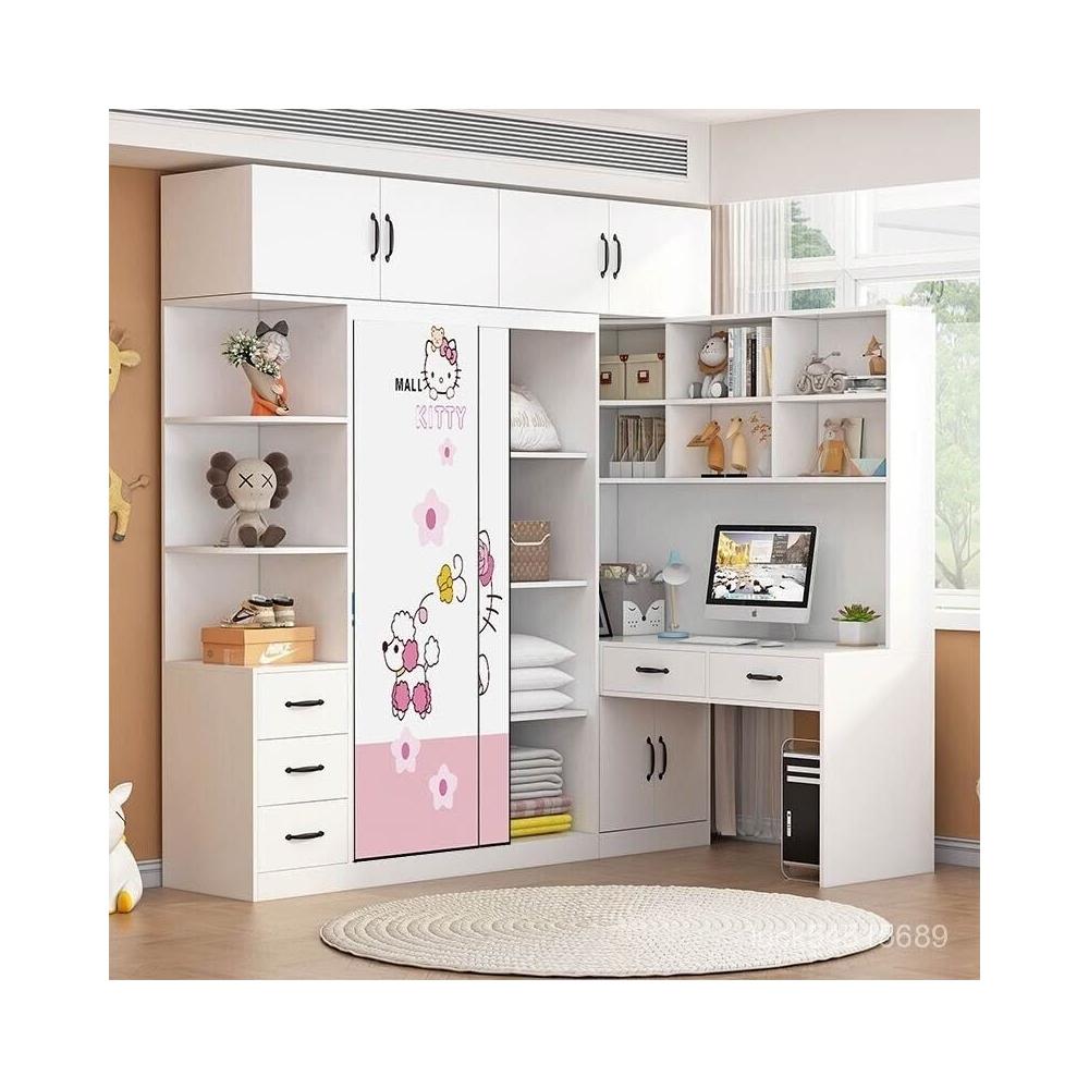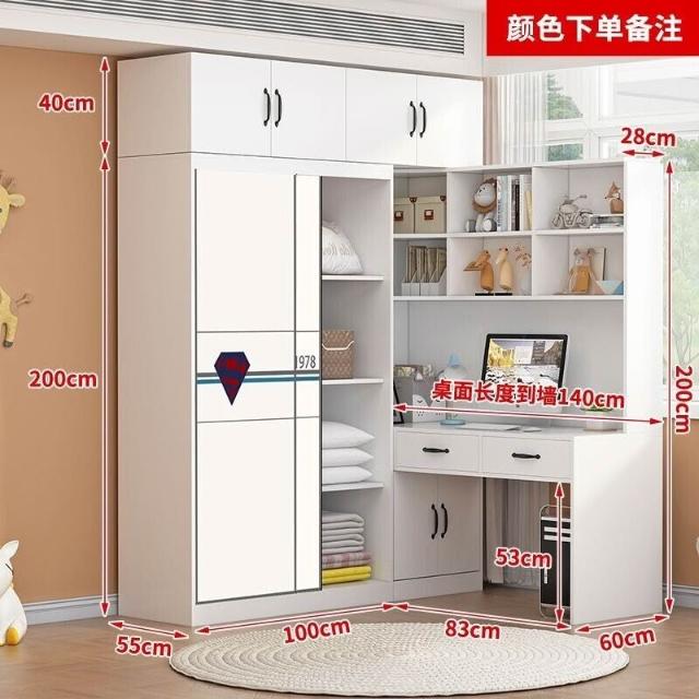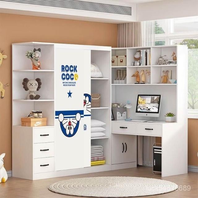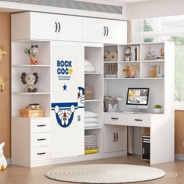 工廠直銷實木推拉門衣書櫃加書桌一體組閤家用臥室兒童學習連體臺式電腦桌 BBMG