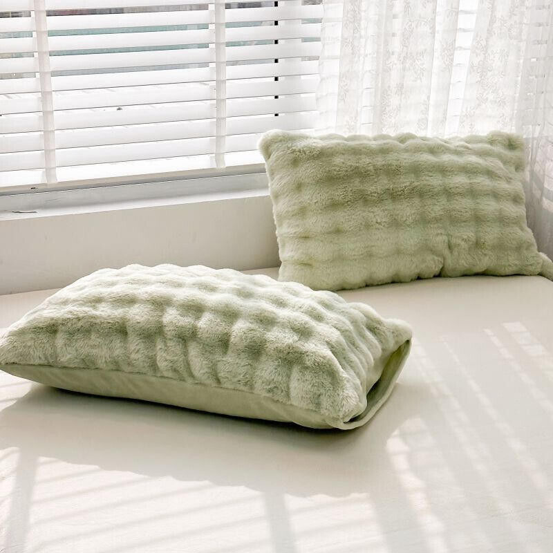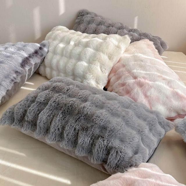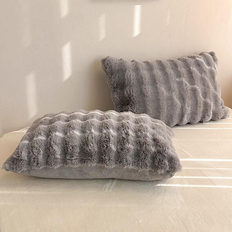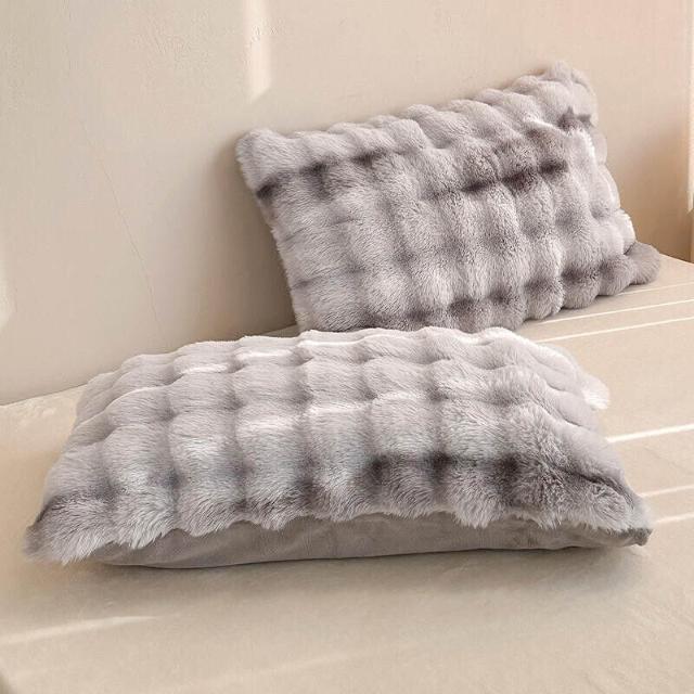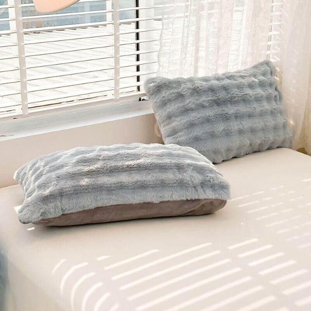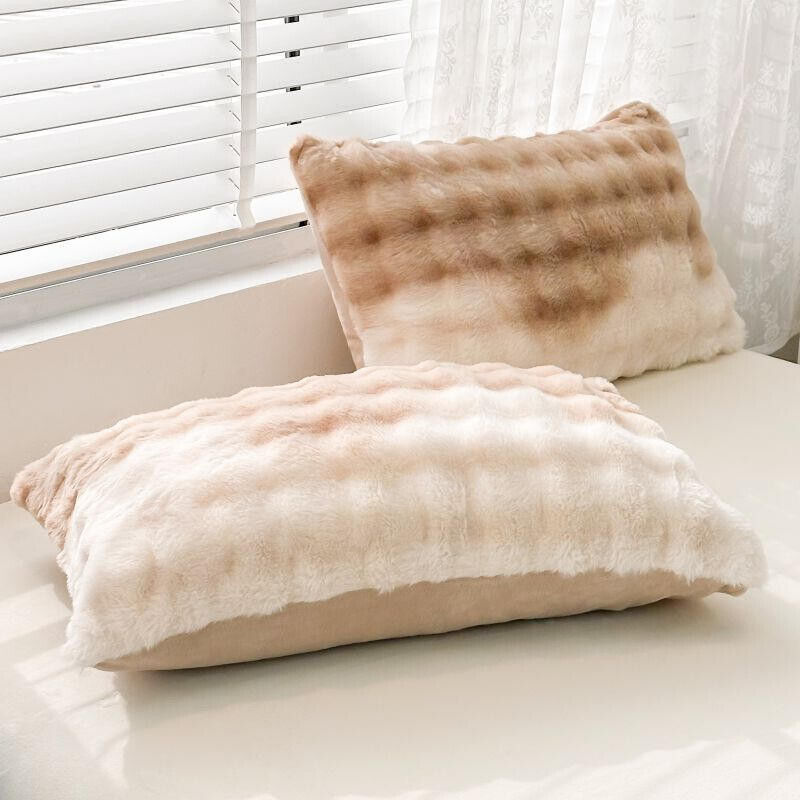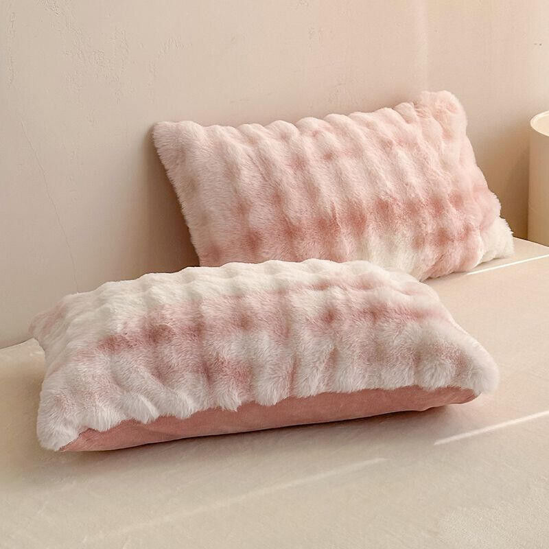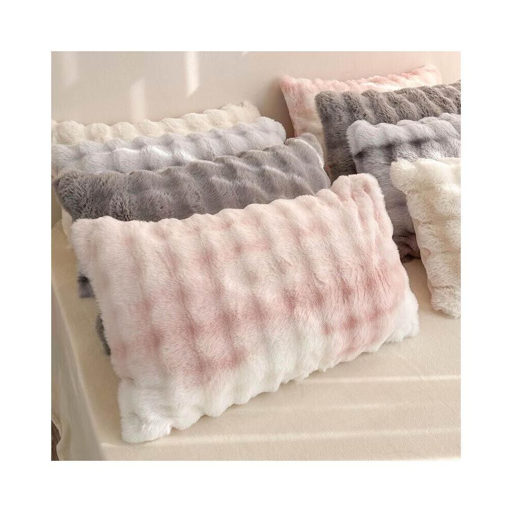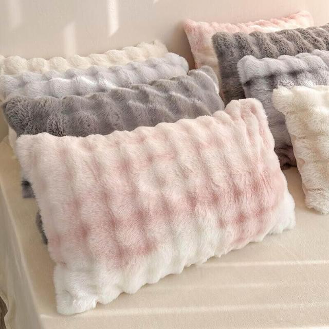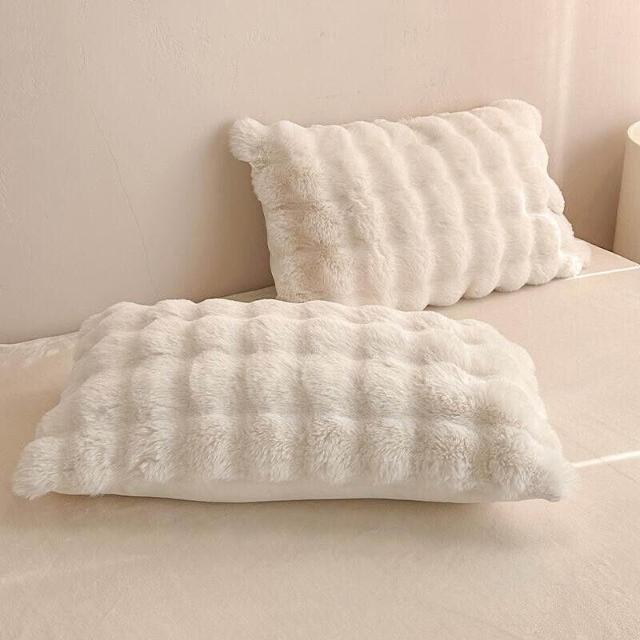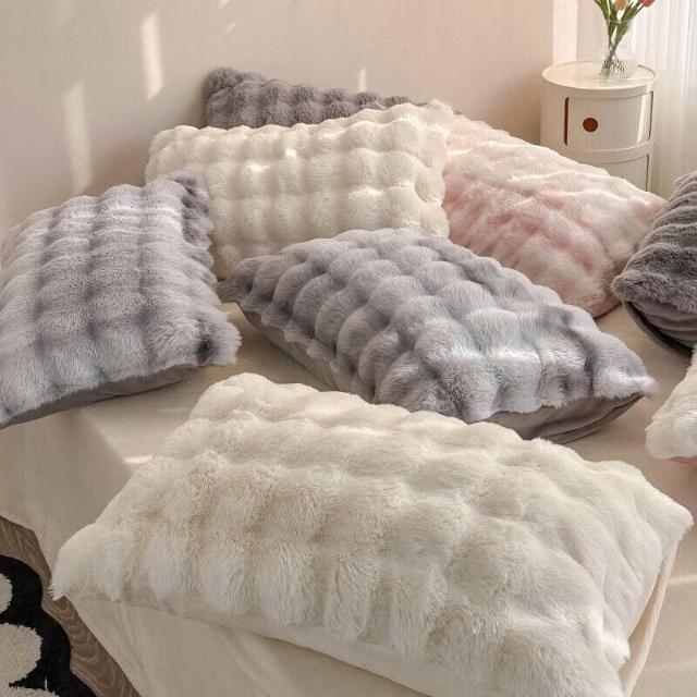 ins兔毛絨枕套 抱枕 家用48*74枕頭 加厚柔軟牛奶絨甜美加絨枕巾 1-2只裝