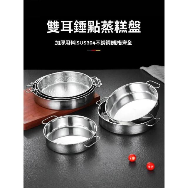 304不銹鋼 蜂窩錘點蒸糕盤 防燙雙耳託盤 涼皮鑼鑼糕盤 圓盤 深盤 菜盤