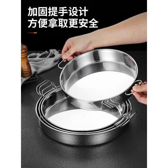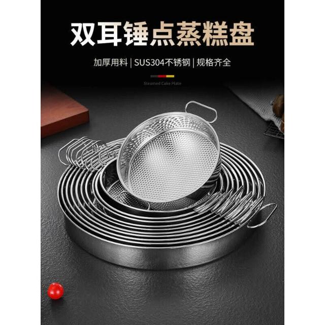 304不銹鋼 蜂窩錘點蒸糕盤 防燙雙耳託盤 涼皮鑼鑼糕盤 圓盤 深盤 菜盤