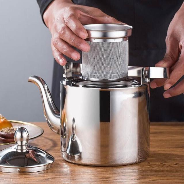 不銹鋼茶壺 泡茶壺 帶濾網飯店餐廳茶壺 飯店用電磁爐大茶壺 家用泡茶壺