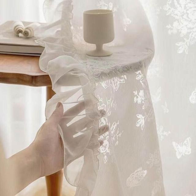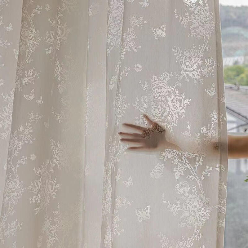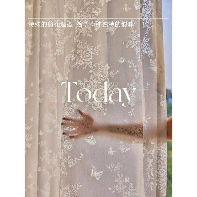 隔音窗簾 遮光窗簾 夢幻法式窗簾 文藝剪花紗簾 客廳臥室落地窗紗簾 玫瑰蝴蝶窗紗 紗簾
