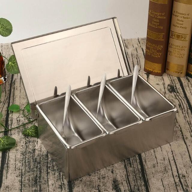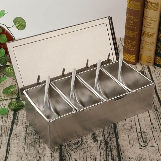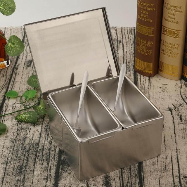 304全鋼不銹鋼 調料卡帶蓋 飯店調味盒 方形儲物盒 家用調料罐 佐料盒