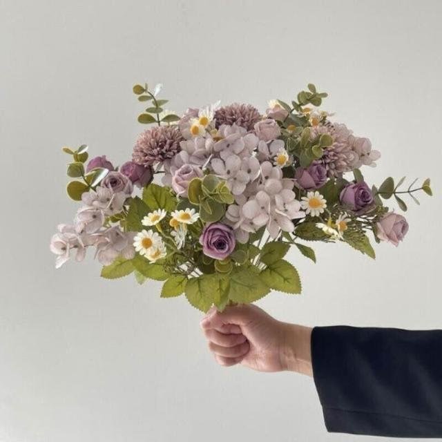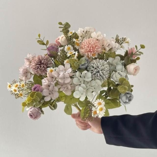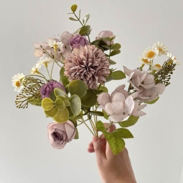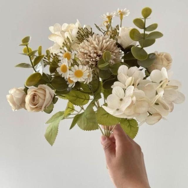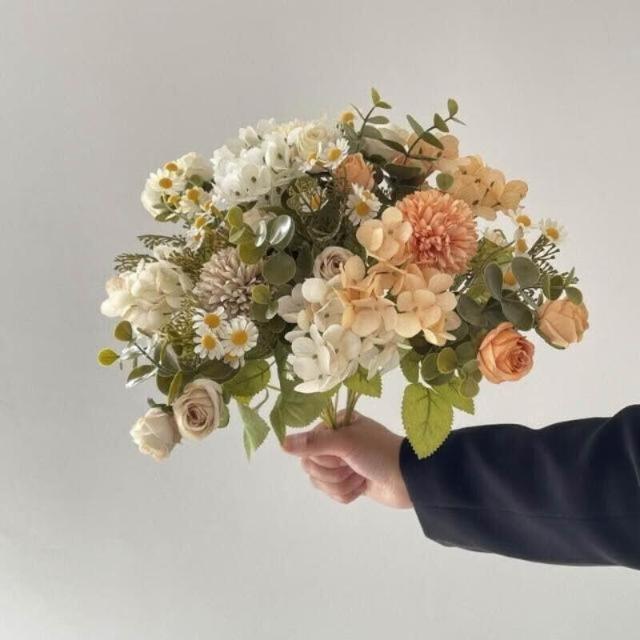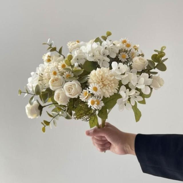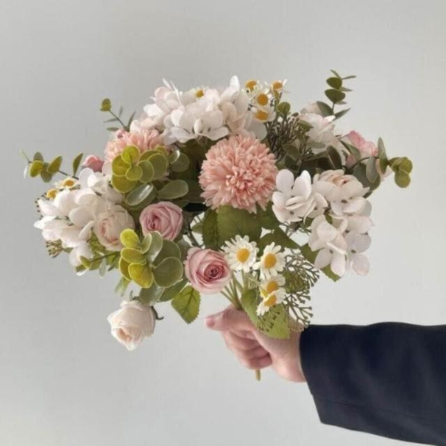 玫瑰甘菊假花 仿真花擺設 仿真花束 玫瑰花 裝潢花 居家擺件 客廳防真花 室內花 美居生活屋