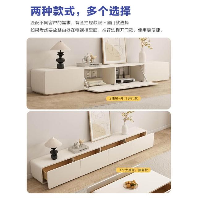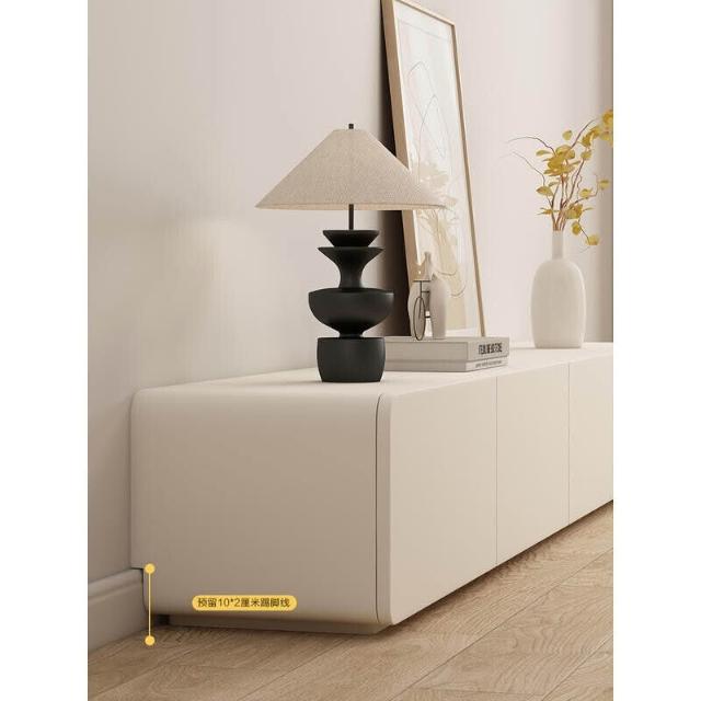 奶油風實木電視櫃 現代簡約茶幾組合 北歐圓角落地櫃 客廳家用電視機櫃