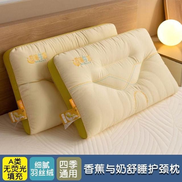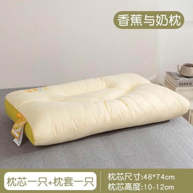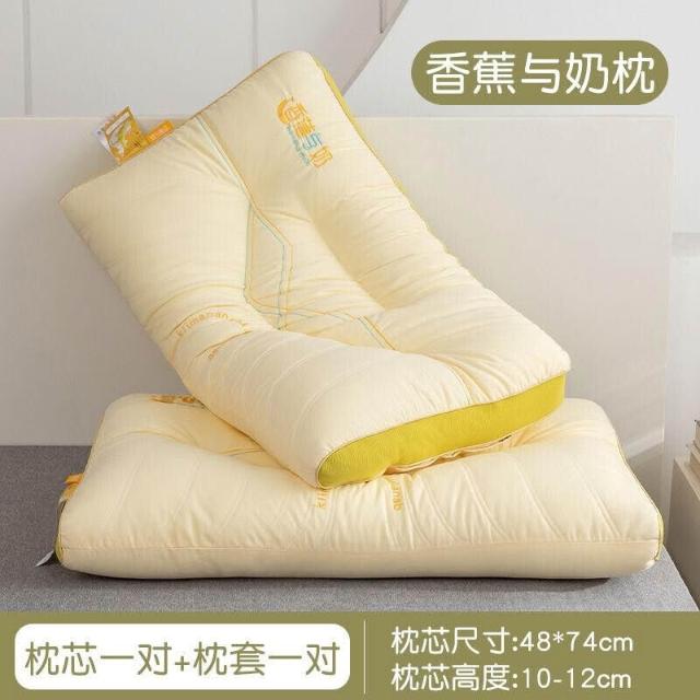 香蕉牛奶枕頭 成人家用一對枕芯 學生宿舍單人護頸枕頭 助眠不塌陷枕頭芯
