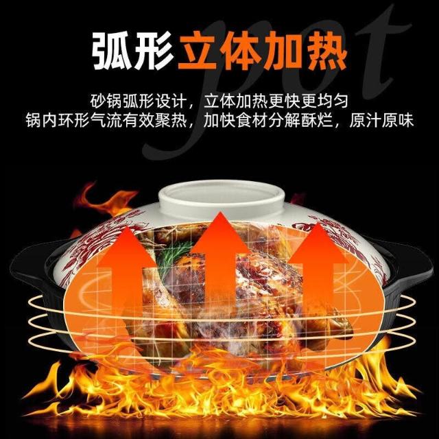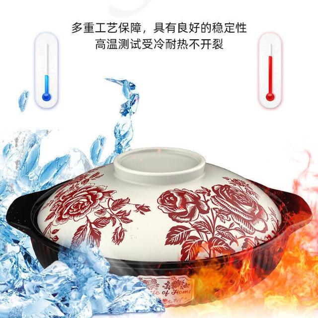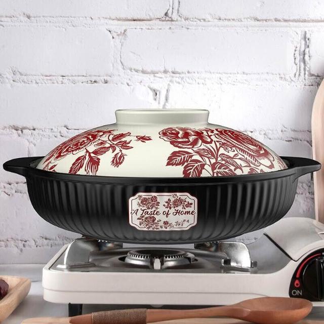 平底幹燒鍋 復古玫瑰陶瓷烤盤 煎盤 幹燒煎炒鍋 耐熱家用砂鍋