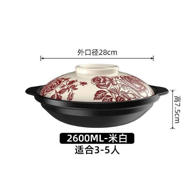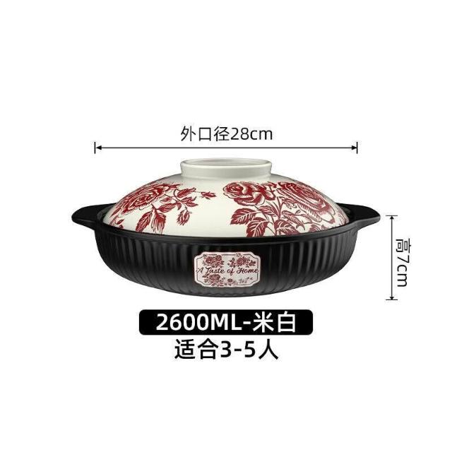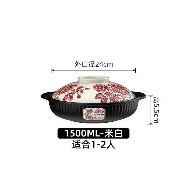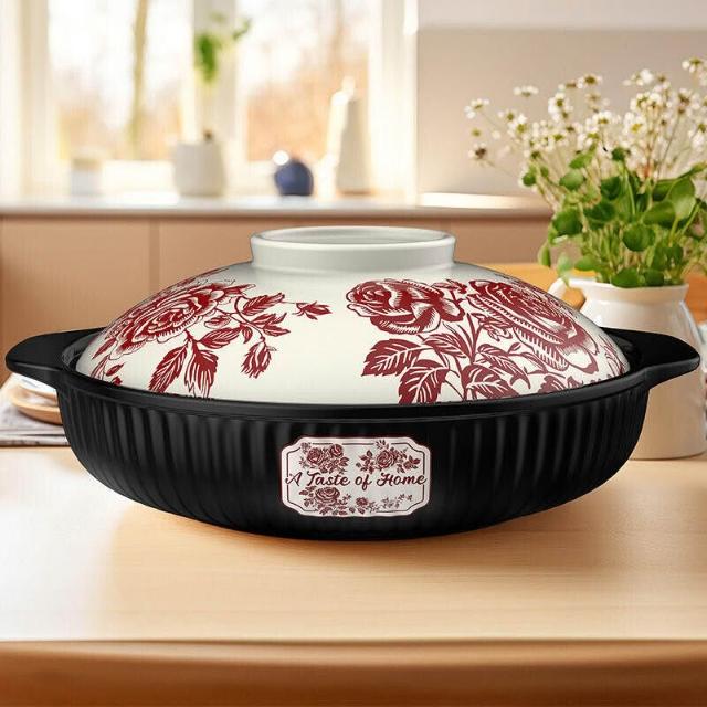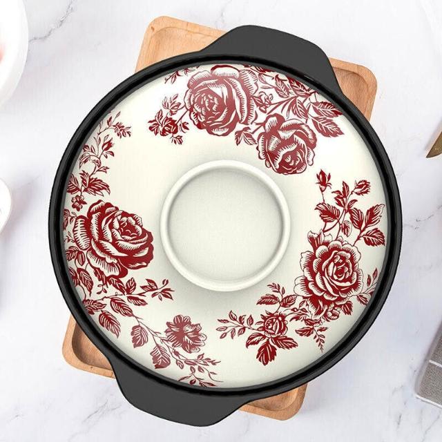 平底幹燒鍋 復古玫瑰陶瓷烤盤 煎盤 幹燒煎炒鍋 耐熱家用砂鍋