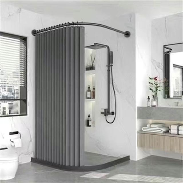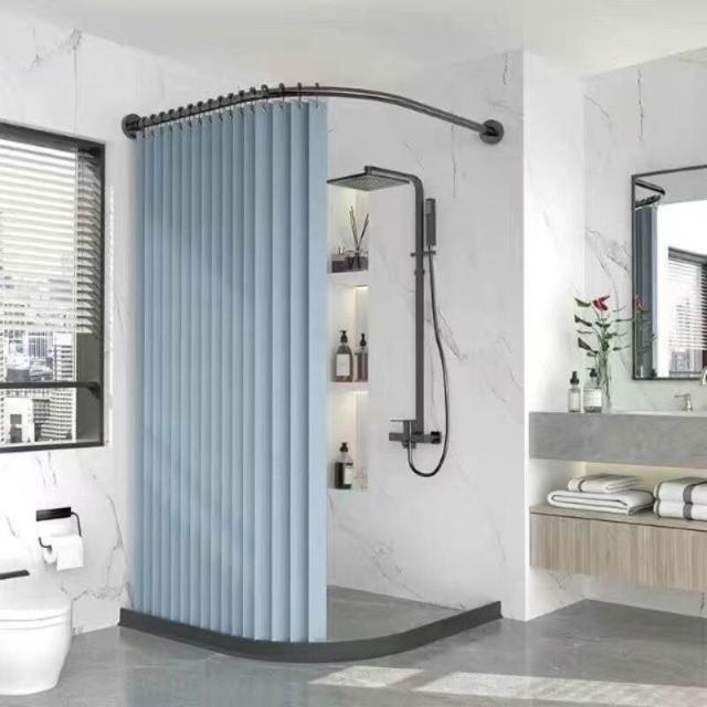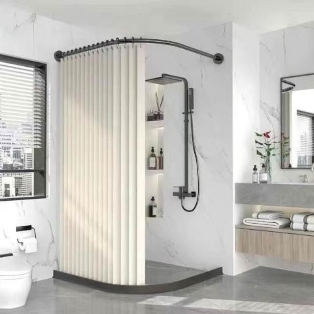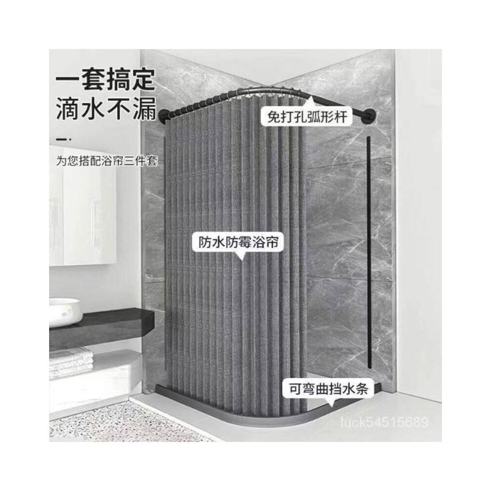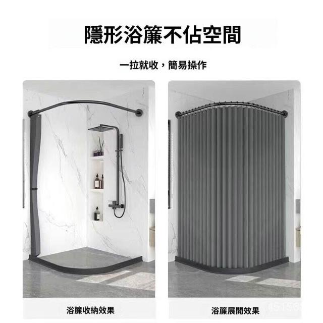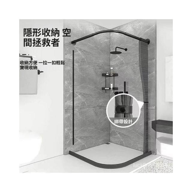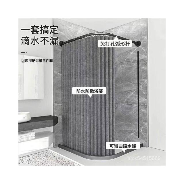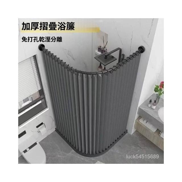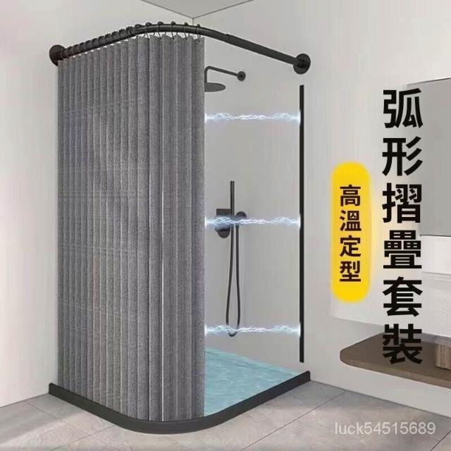 新款#推薦衛生間弧形浴簾套裝免打孔折疊浴簾佈防水防黴幹濕分離浴室隔斷簾 美居生活屋