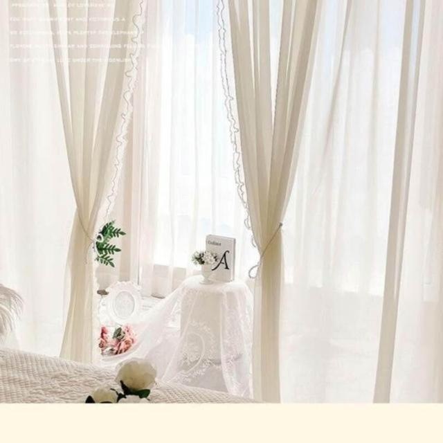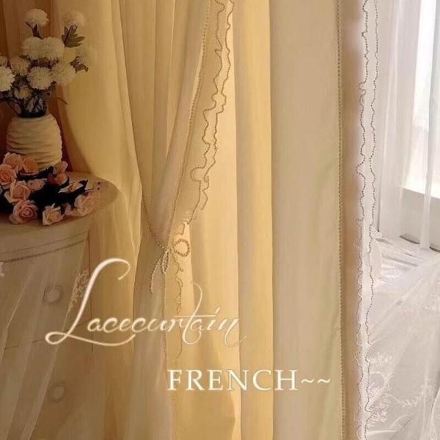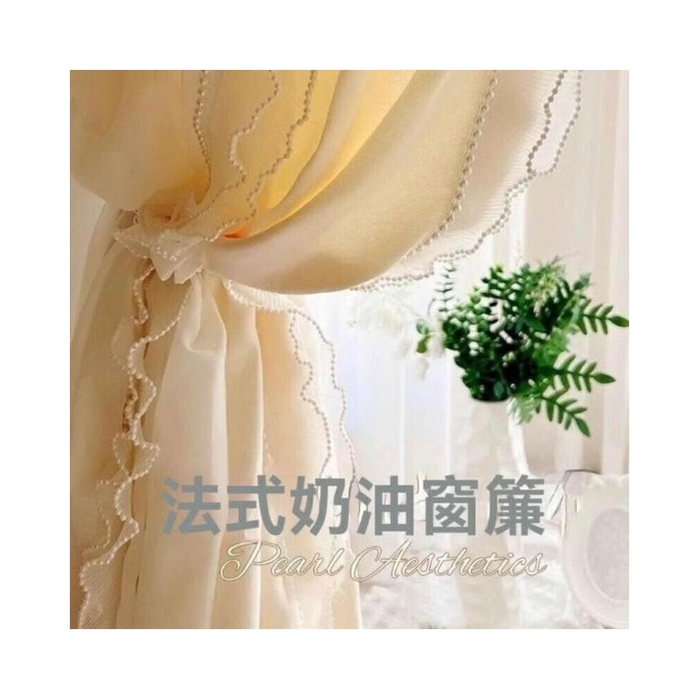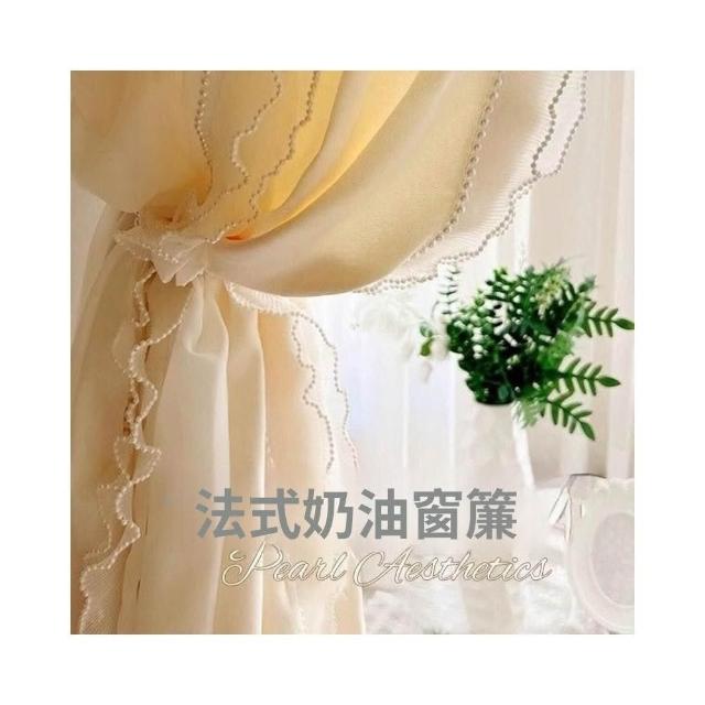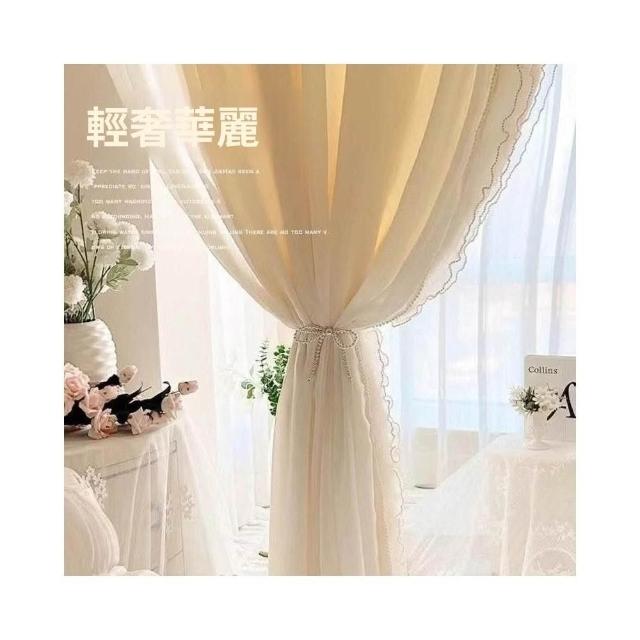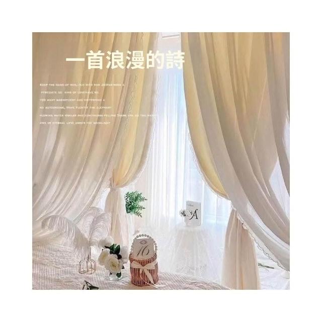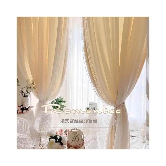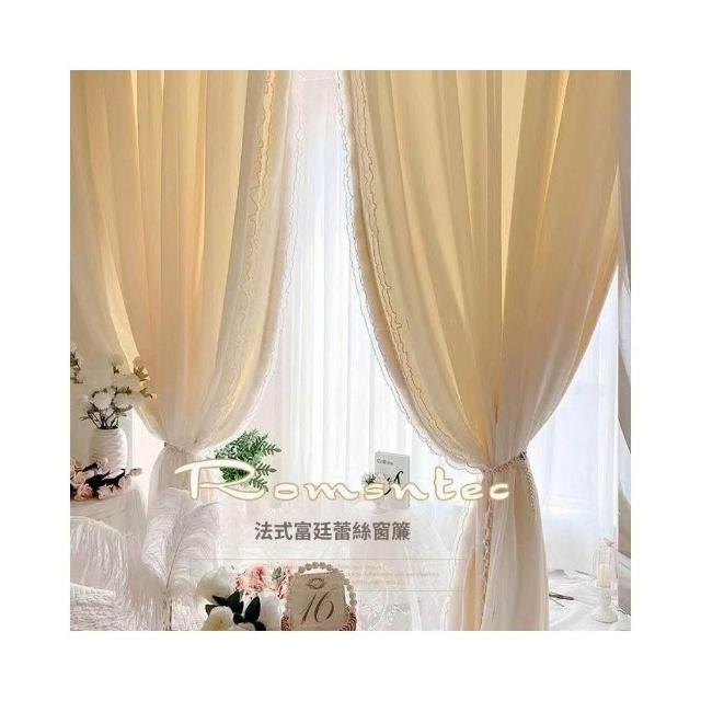 法式奶油風窗簾 女生臥室遮光簾 新款飄窗紗簾 客廳輕奢雙層蕾絲紗簾 美居生活屋