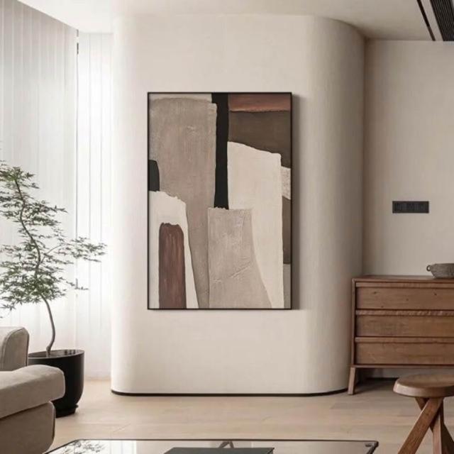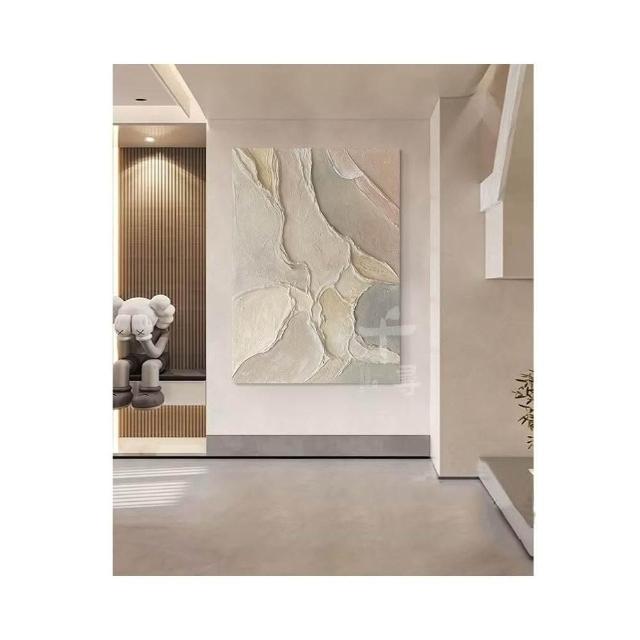手繪立體油畫 奶油風掛畫 高級感玄關裝飾畫 百搭色系客廳抽象肌理壁畫 美居生活屋