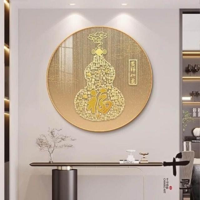 新中式葫蘆掛畫客廳餐廳金色福祿入戶玄關裝飾畫走廊圓形福字壁畫 美居生活屋