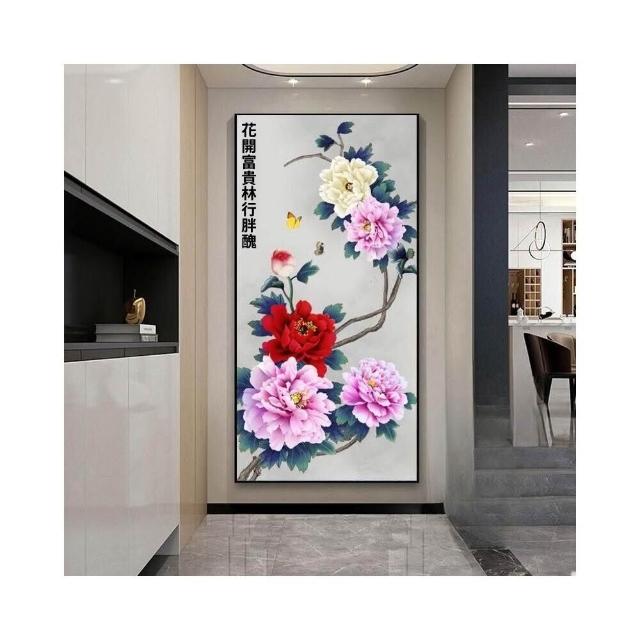 牡丹花開富貴壁畫 家和玄關掛畫 新中式走廊裝飾畫 豎版過道儘頭牆畫 美居生活屋