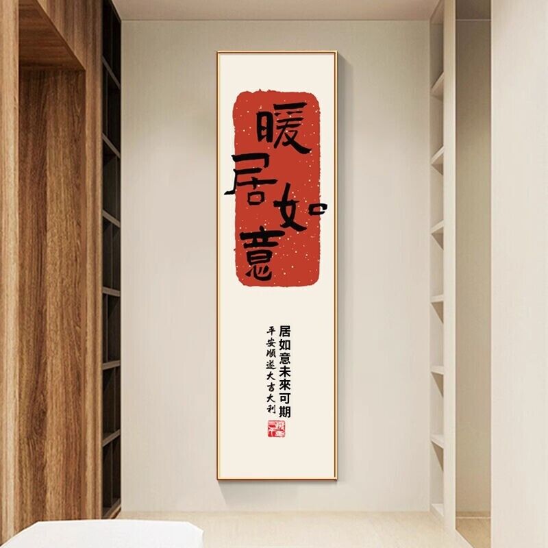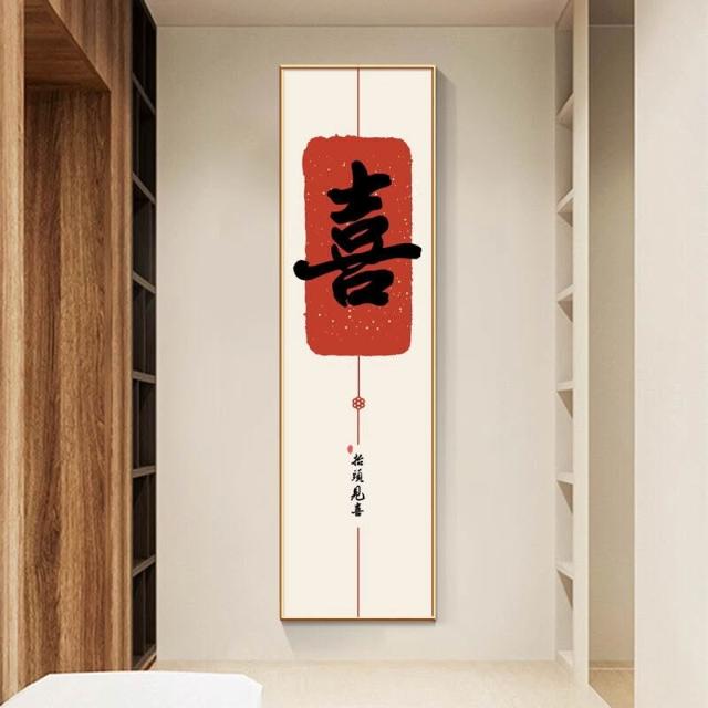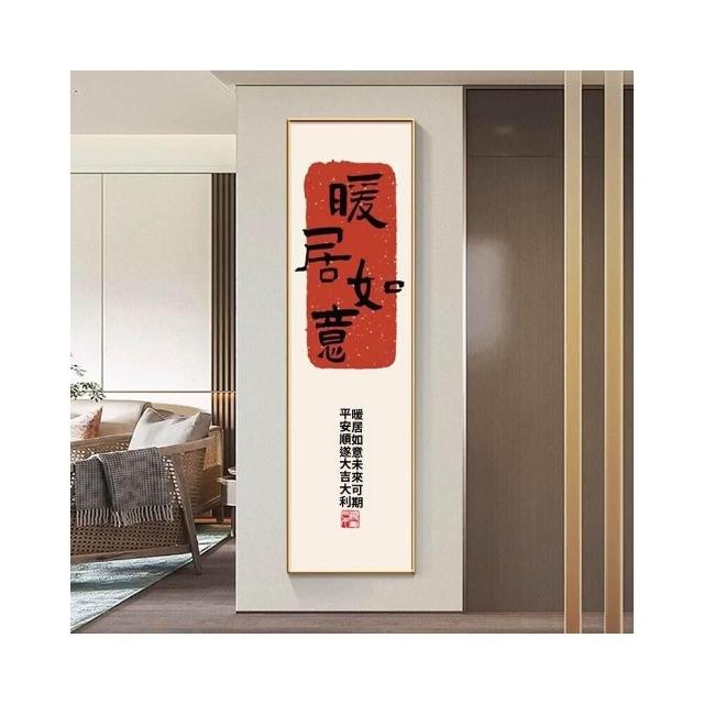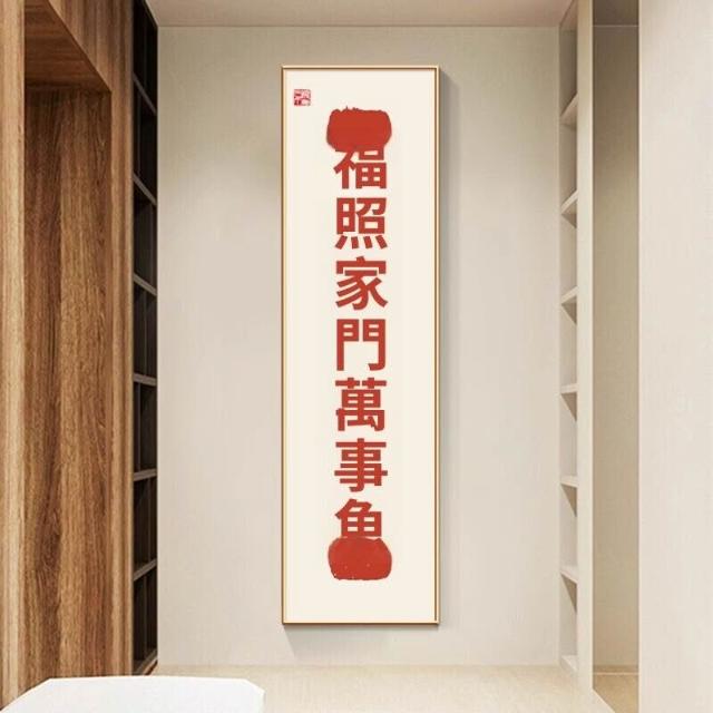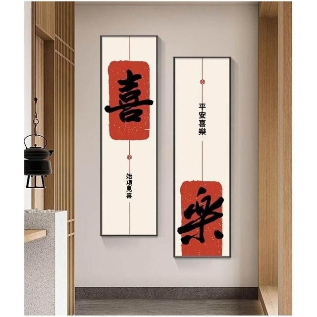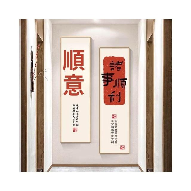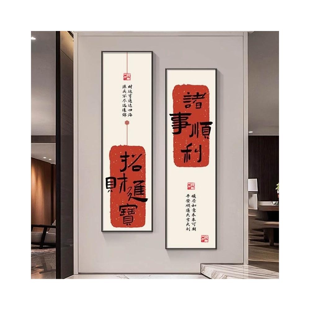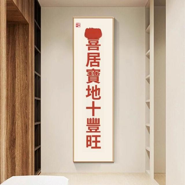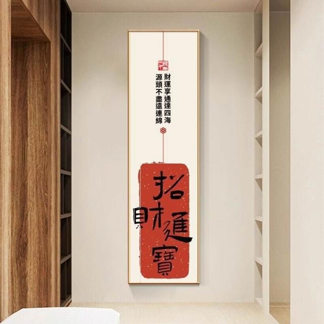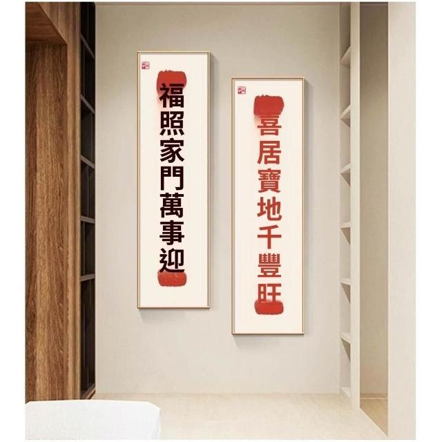 新中式招財進寶玄關裝飾畫 窄長條字畫 兩聯走廊過道茶室客廳掛畫 美居生活屋