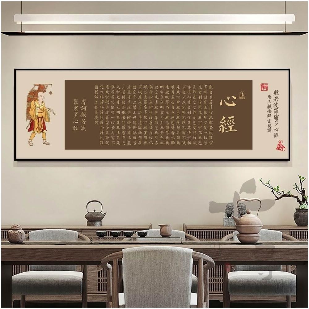 心經掛畫 觀音佛像心經 大悲咒 沙發背景墻裝飾畫 佛堂牌位供奉壁畫 玄關風水畫 招財蓮花墻畫