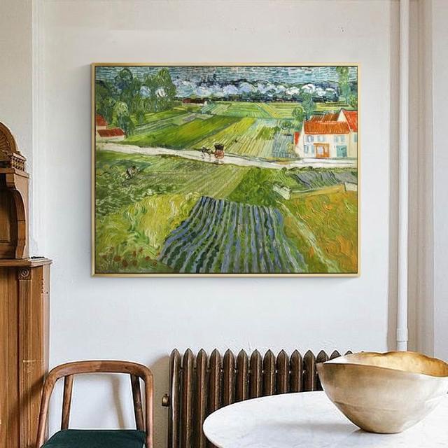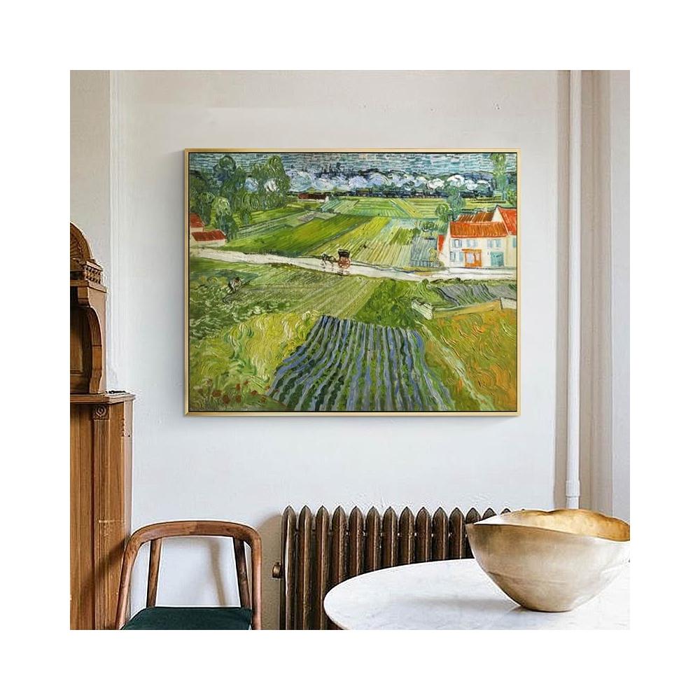 名畫系列 梵谷 奧維的雨天 橫版大鋁合金內框畫無框畫掛畫擺畫餐廳走廊中島背景墻裝飾框畫藝術畫