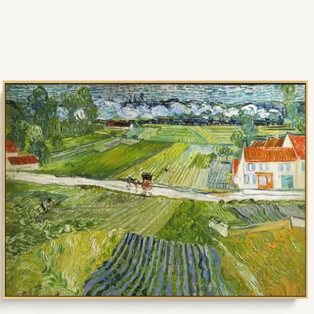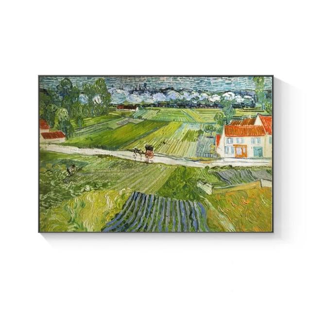 名畫系列 梵谷 奧維的雨天 橫版大鋁合金內框畫無框畫掛畫擺畫餐廳走廊中島背景墻裝飾框畫藝術畫