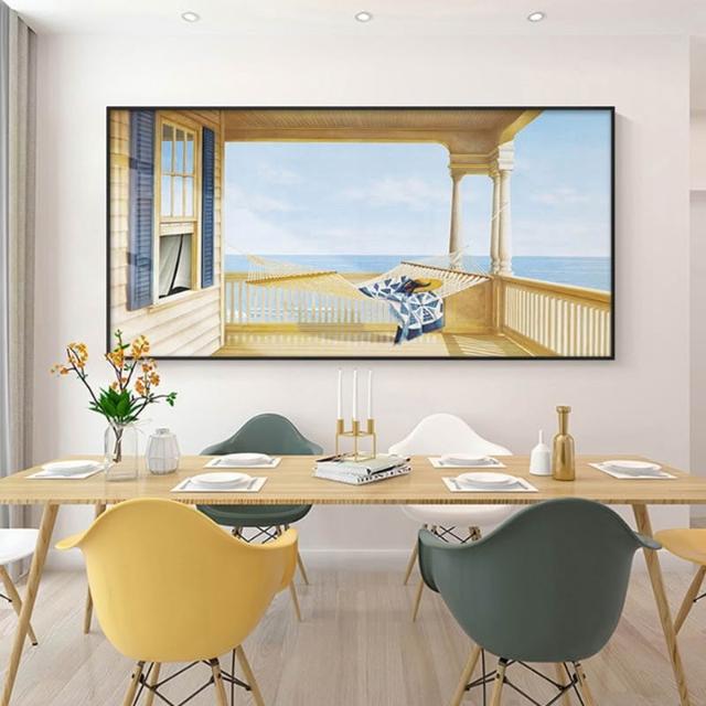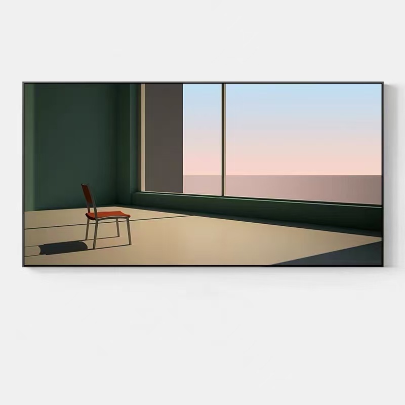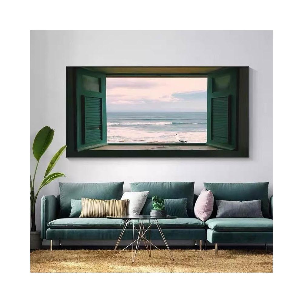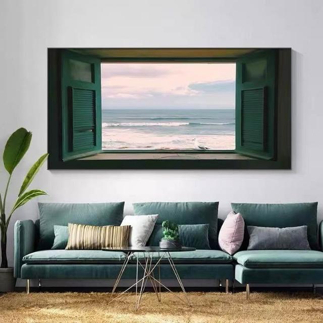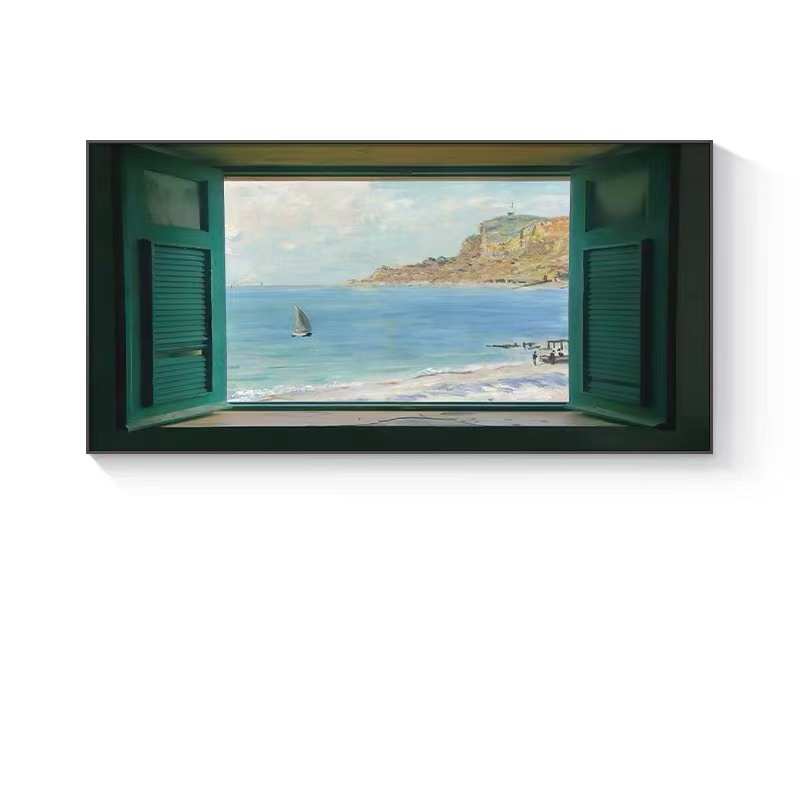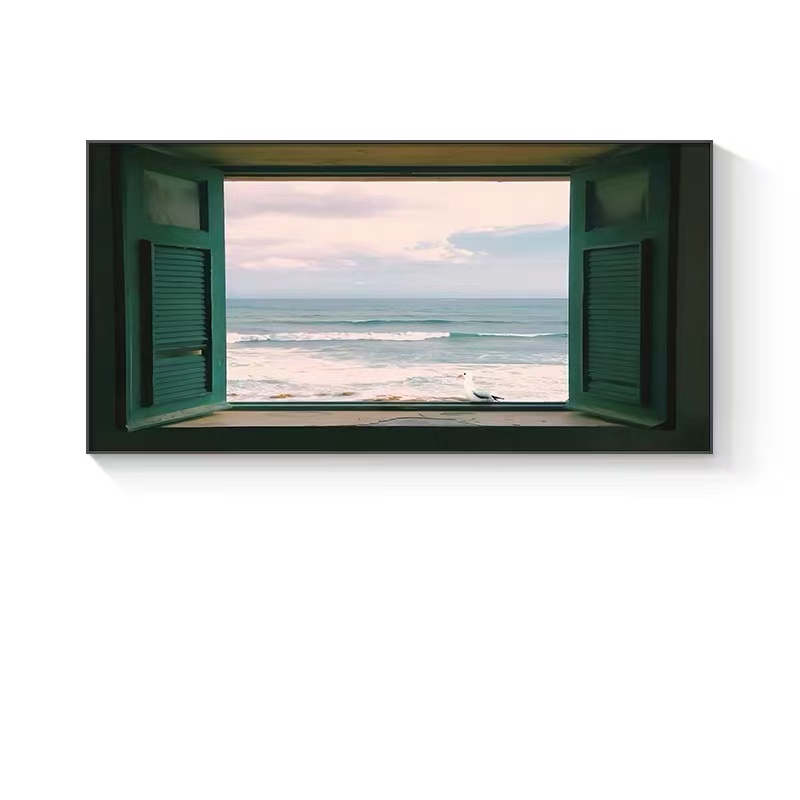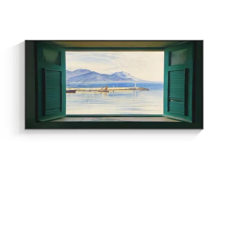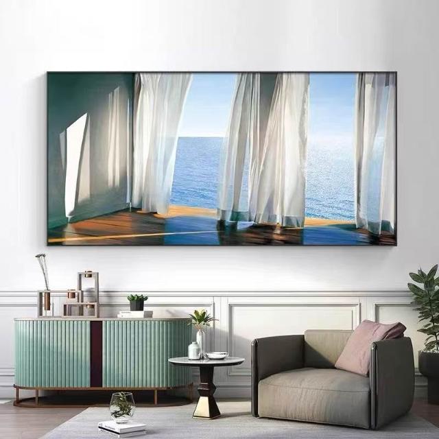 窗含遠瀾 獨賞閒庭 空間視覺延展 橫版大尺寸鋁合金裝飾掛畫大型無框畫擺畫輕奢背景墻裝飾框壁畫