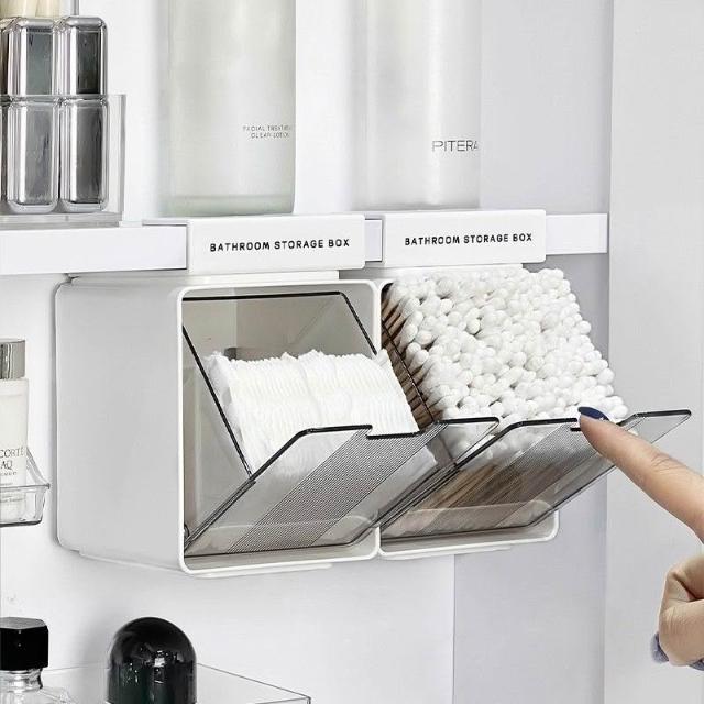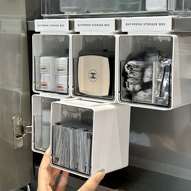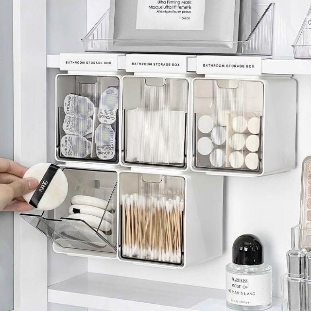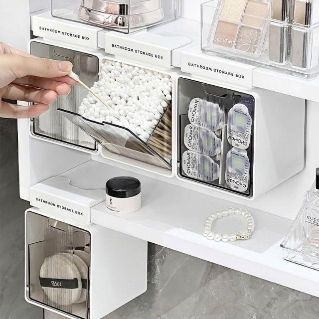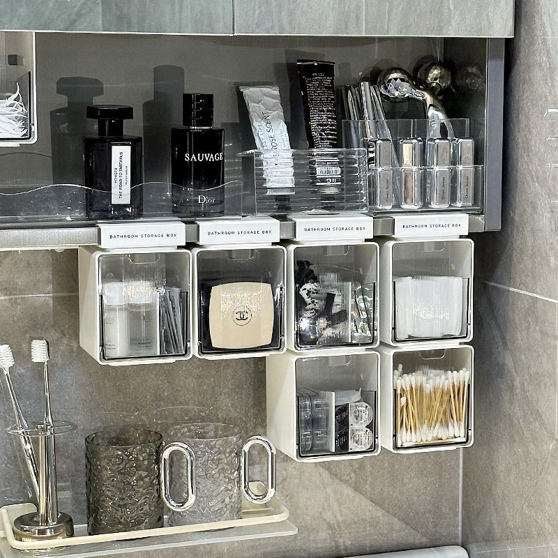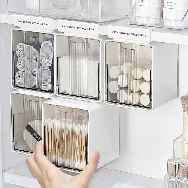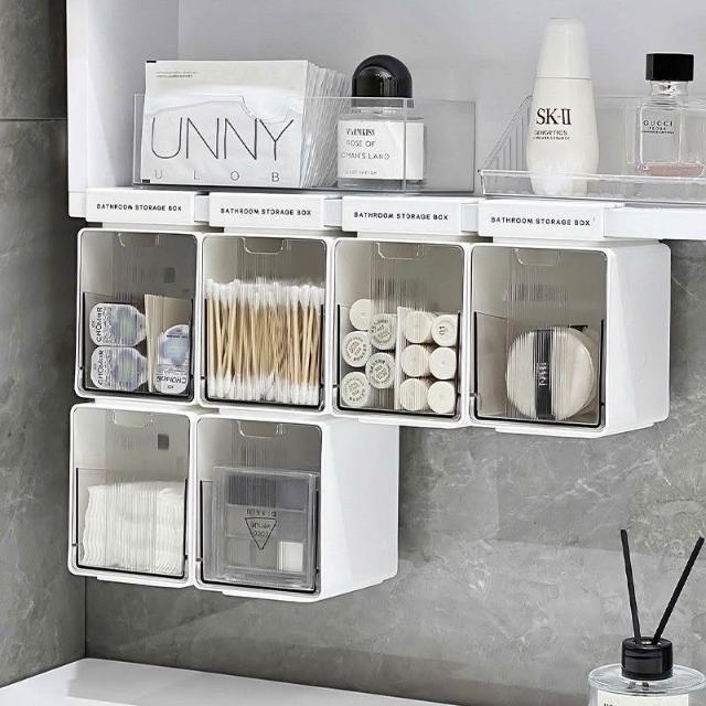 ⚡居家生活⚡ 透明鏡櫃收納盒壁掛式衛生間浴室櫃內化妝品口紅棉籤置物架神器 抽屜式 推拉收納 收納架
