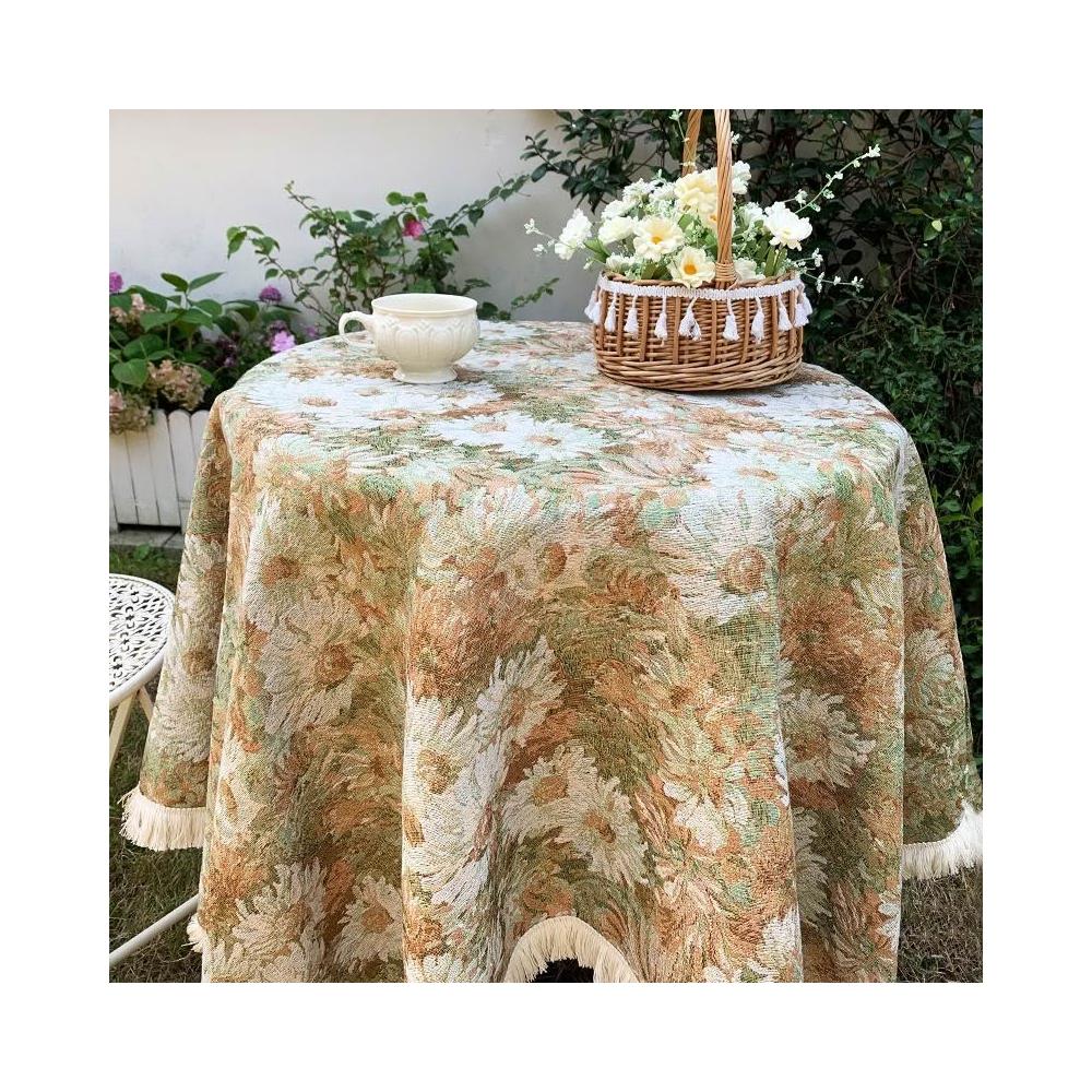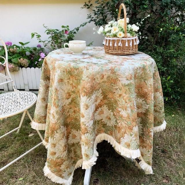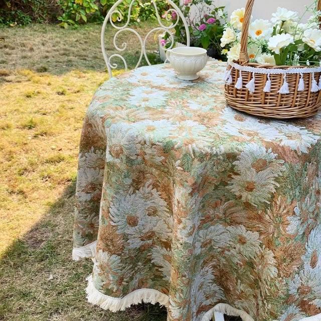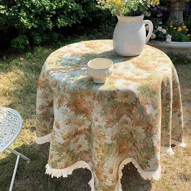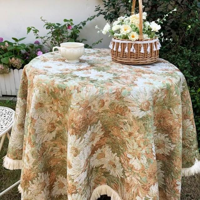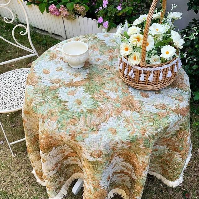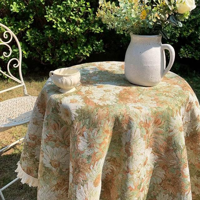 高品質精貨復古莫奈花園油畫電視櫃蓋巾美式提花棉麻桌布家用長方形桌面檯布 桌布 桌墊 墊子