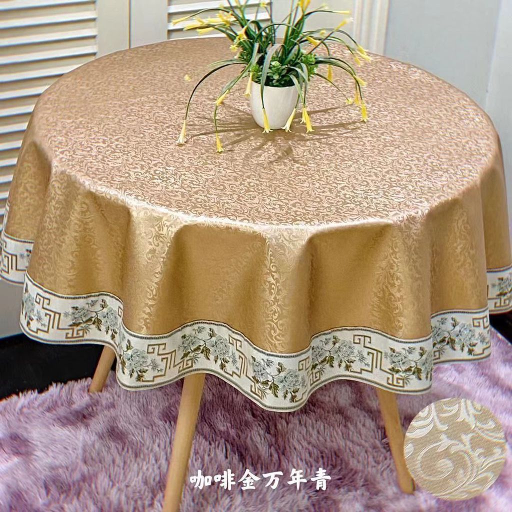 高品質精貨2.4米整張圓形花邊防水防油免洗圓桌布高檔上檔次酒店飯店家用 桌布 桌墊 墊子