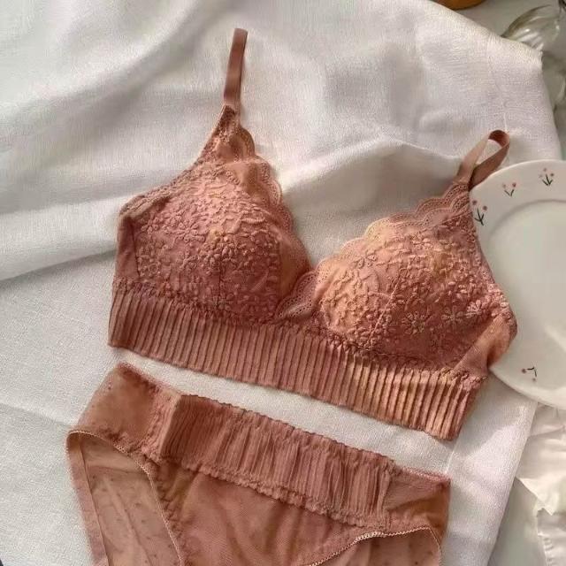 奧米琳 優雅法式蕾絲無鋼圈內衣 (三角杯墊/薄杯/4色)