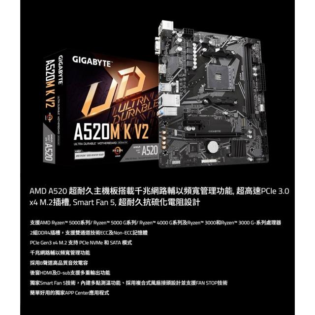 GIGABYTE 技嘉A520M K V2 DDR4主機板-註4