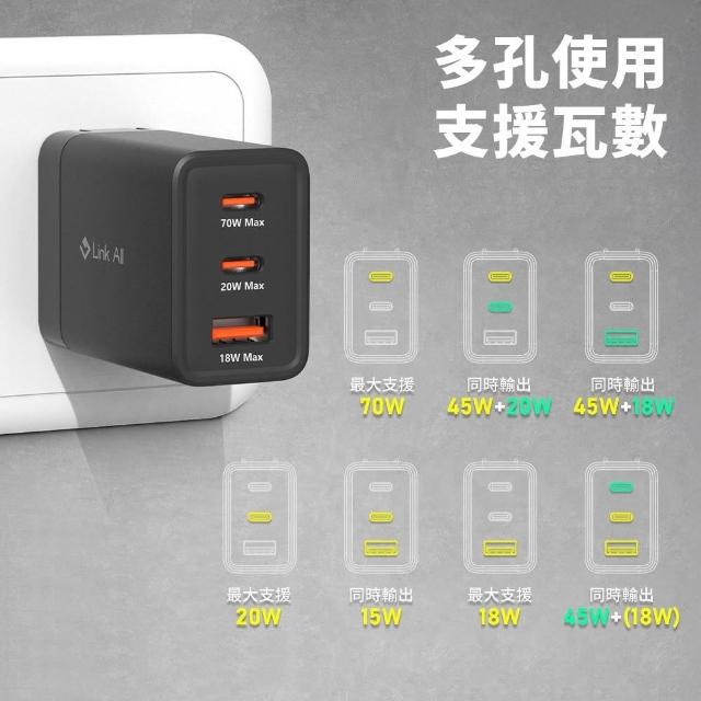 Link AllGAN10-70W/氮化鎵 3埠迷你閃充 USB充電器 黑/白