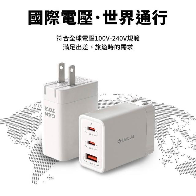 Link AllGAN10-70W/氮化鎵 3埠迷你閃充 USB充電器 黑/白