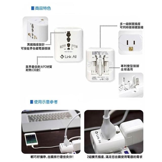 Link AllGU500 轉接頭 萬國 充電器 快充 旅行 旅充 黑/白