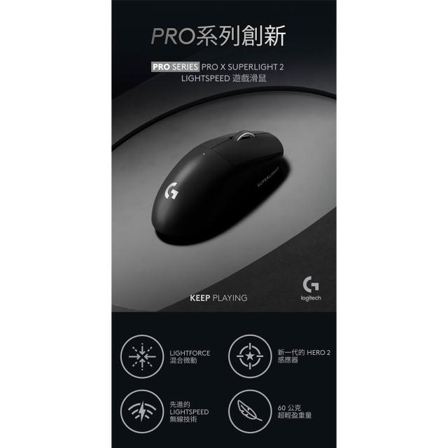 Logitech 羅技PRO X SUPERLIGHT 2 無線輕量化遊戲滑鼠 桃紅/白色/黑色