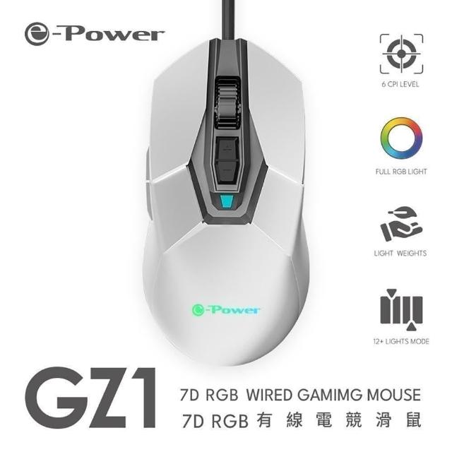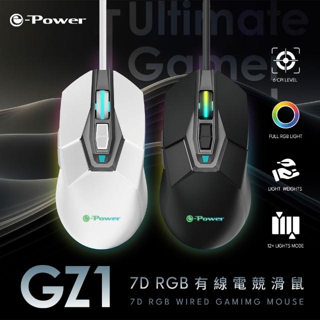 e-PowerGZ1 7D RGB電競滑鼠 有線電競滑鼠 黑色/白色 (KM-R316)