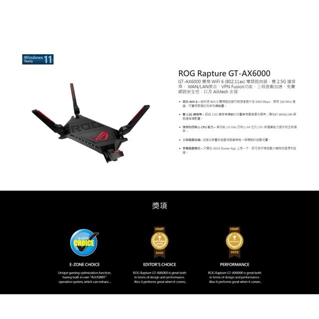 ASUS 華碩GT-AX6000 WiFi 6 AX雙頻電競路由器