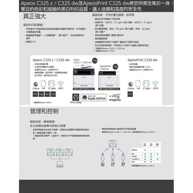 FUJIFILM 富士Apeos C325z 彩色雙面無線S-LED傳真掃描複合機