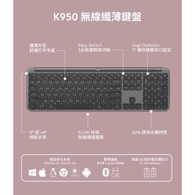 Logitech 羅技MK950 無線鍵盤滑鼠組(石墨黑)