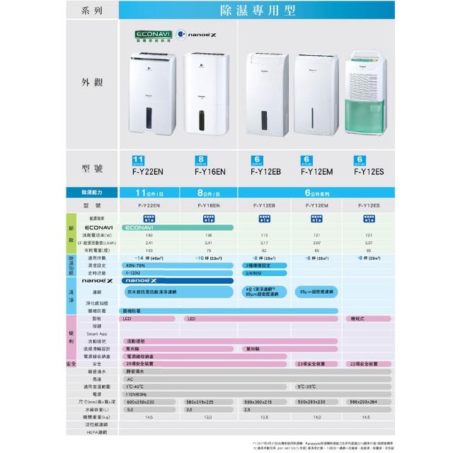 Panasonic 國際牌F-Y22EN 11L 除濕機 三年保固 ECONAVI nanoe X