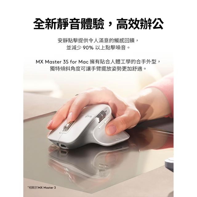 Logitech 羅技MX Master 3S For Mac 灰/黑 藍芽 無線滑鼠