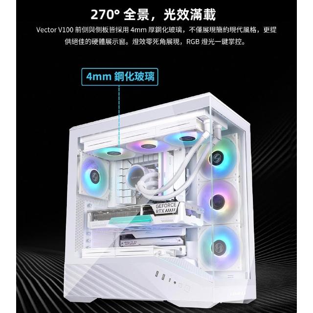 LIAN LI 聯力Vector V100R 全景RGB電競機殼 側鋼化玻璃 全方位散熱 內建展示台