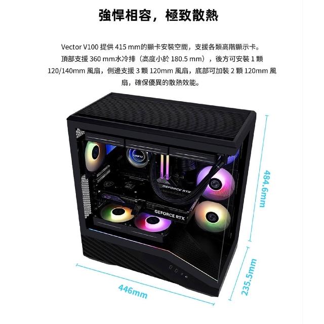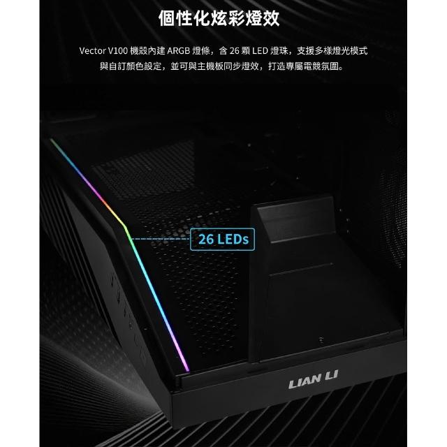 LIAN LI 聯力Vector V100R 全景RGB電競機殼 側鋼化玻璃 全方位散熱 內建展示台