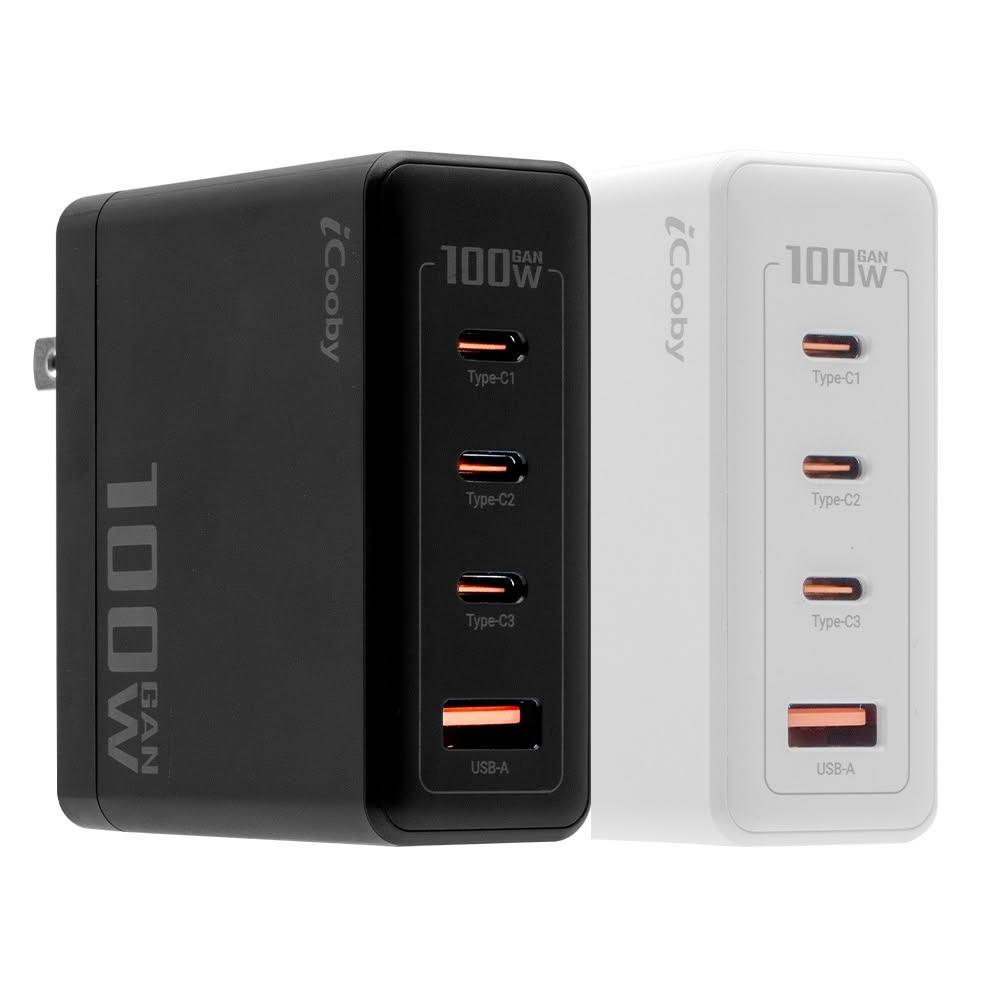 iCoobyUB-100W 氮化鎵100W 4埠快充頭 USB充電器 黑/白