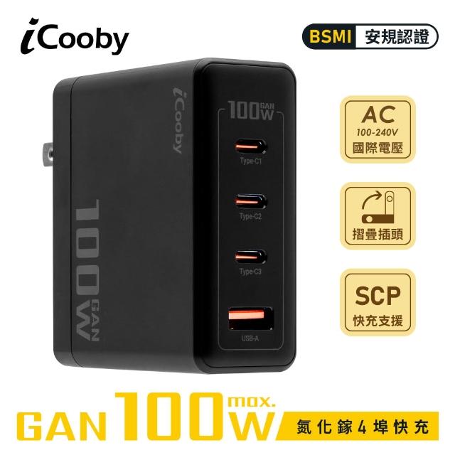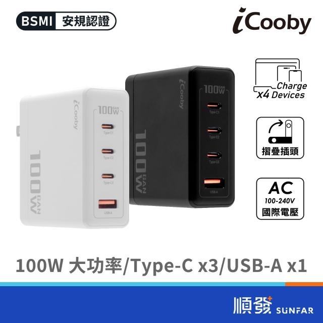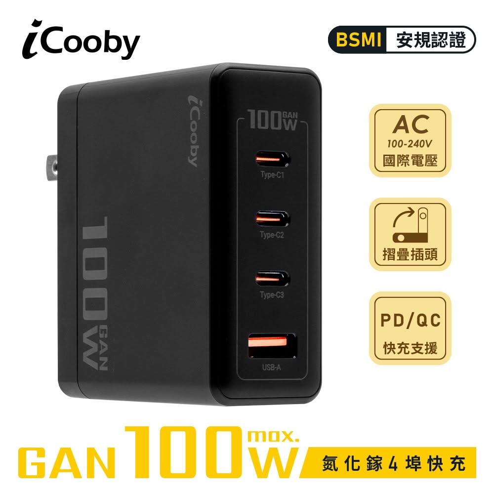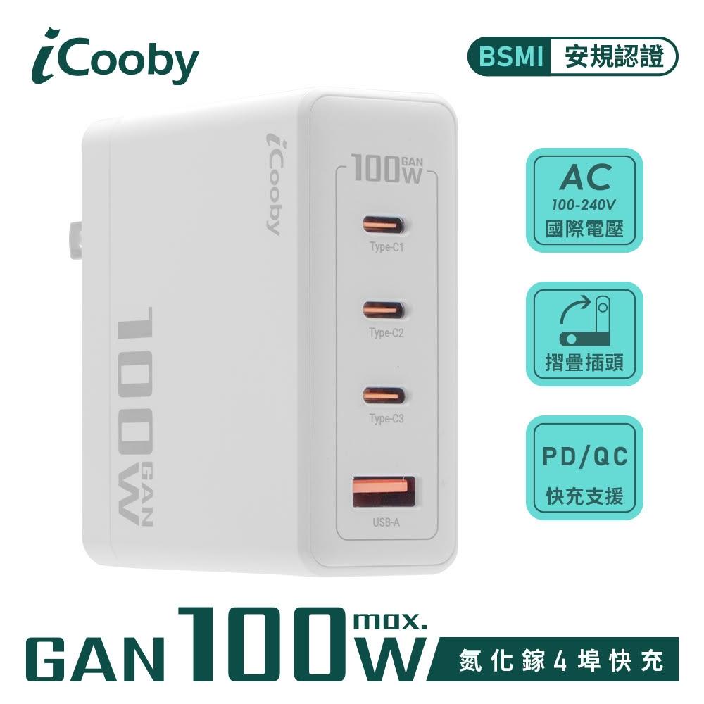 iCoobyUB-100W 氮化鎵100W 4埠快充頭 USB充電器 黑/白