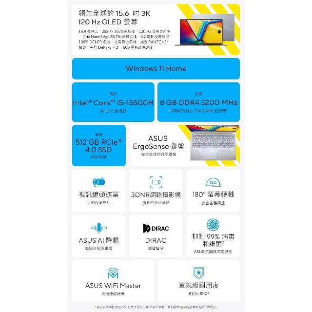 ASUS 華碩Vivobook X1505VA 文書筆電 特仕升級版 13代i5/8G/512G/OLED 展示機 福利品