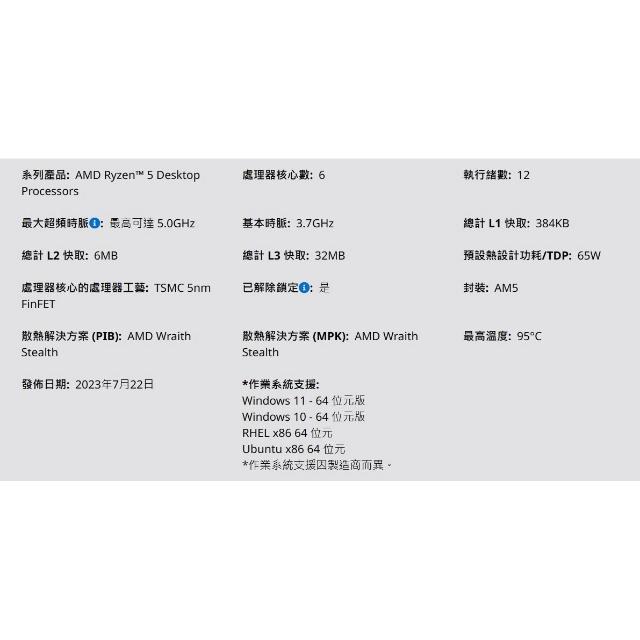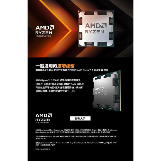 AMD 超微 R5 7500F MPK 3.7GHz 6核12緒/無內顯